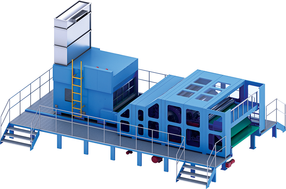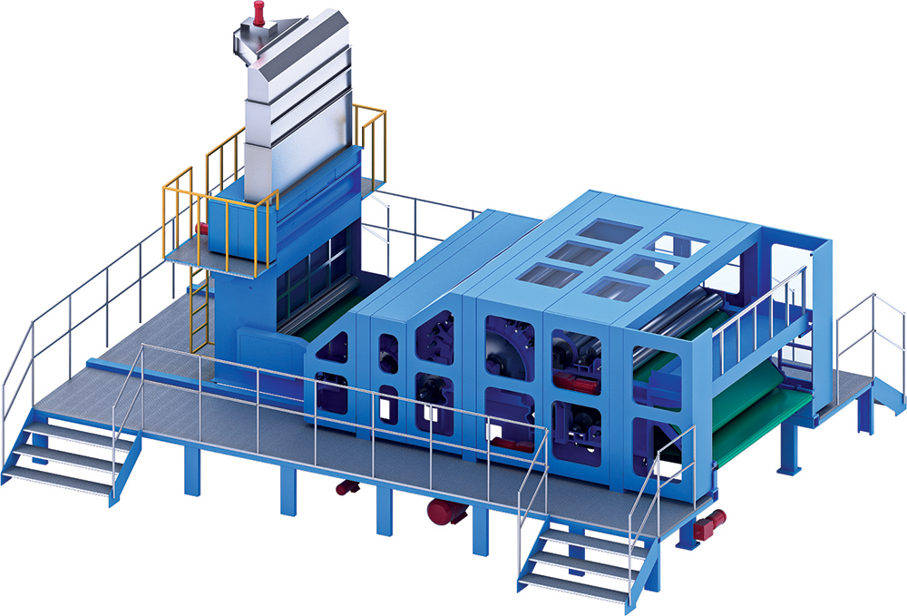 - Doffer와 condenser를 통해 평형 또는 랜덤 상태의 Web을 형성하여 다음 공정으로 공급한다.