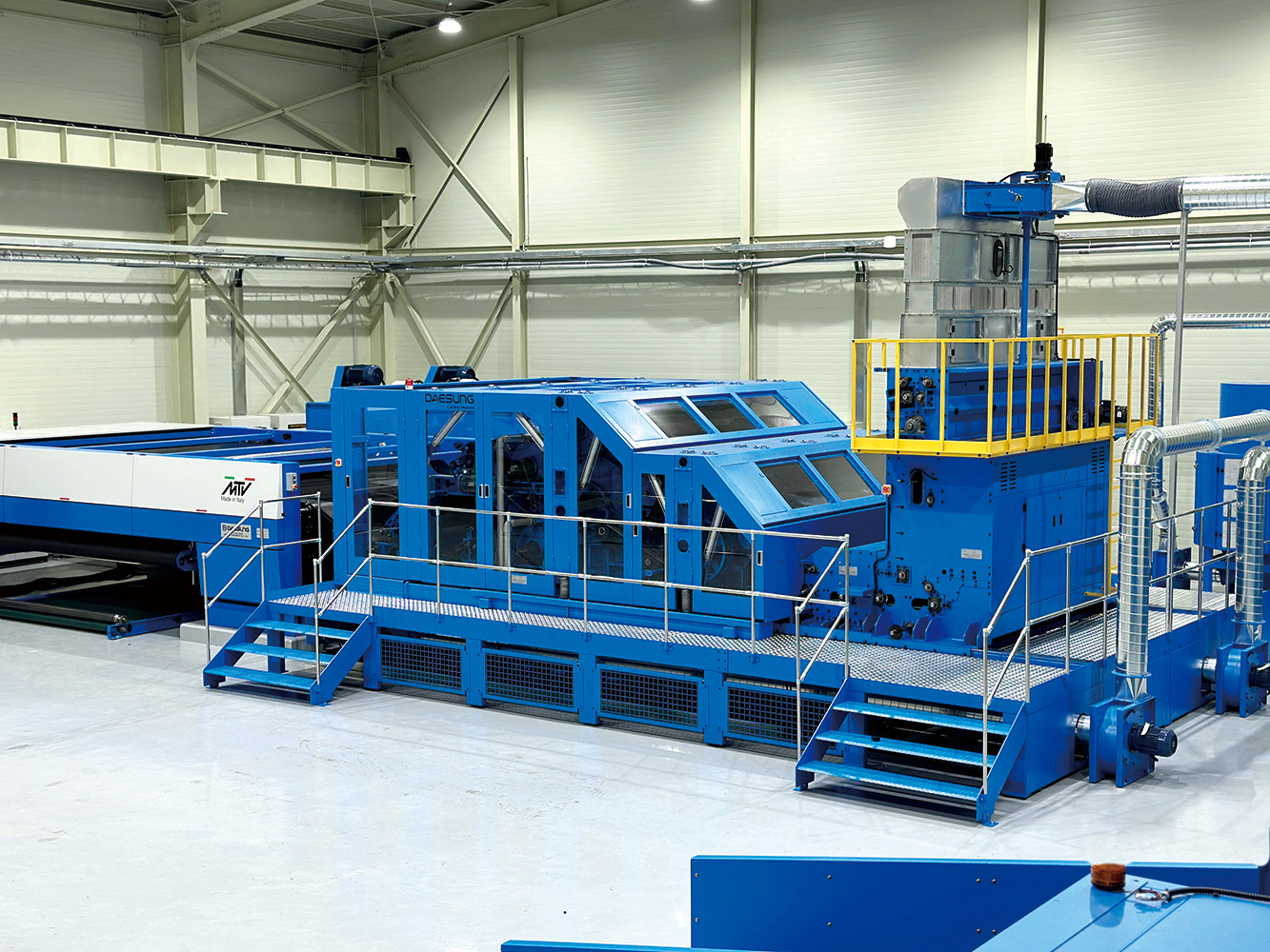 - Main Cylinder의 표면 속도는 Max. 1300m/min이며, Web 중량은 15~50g/㎡, 생산 속도는 Max. 90m/min이다.