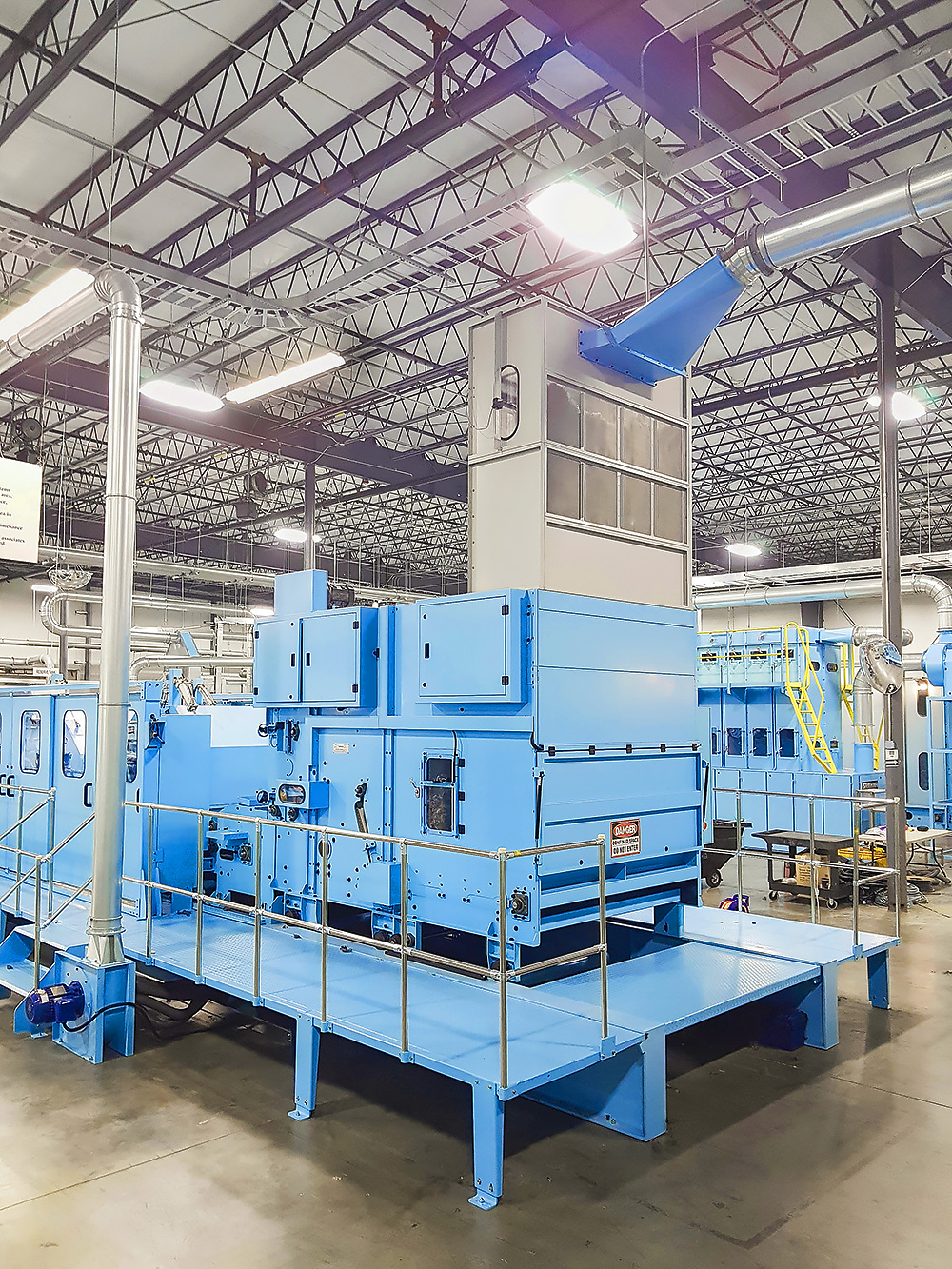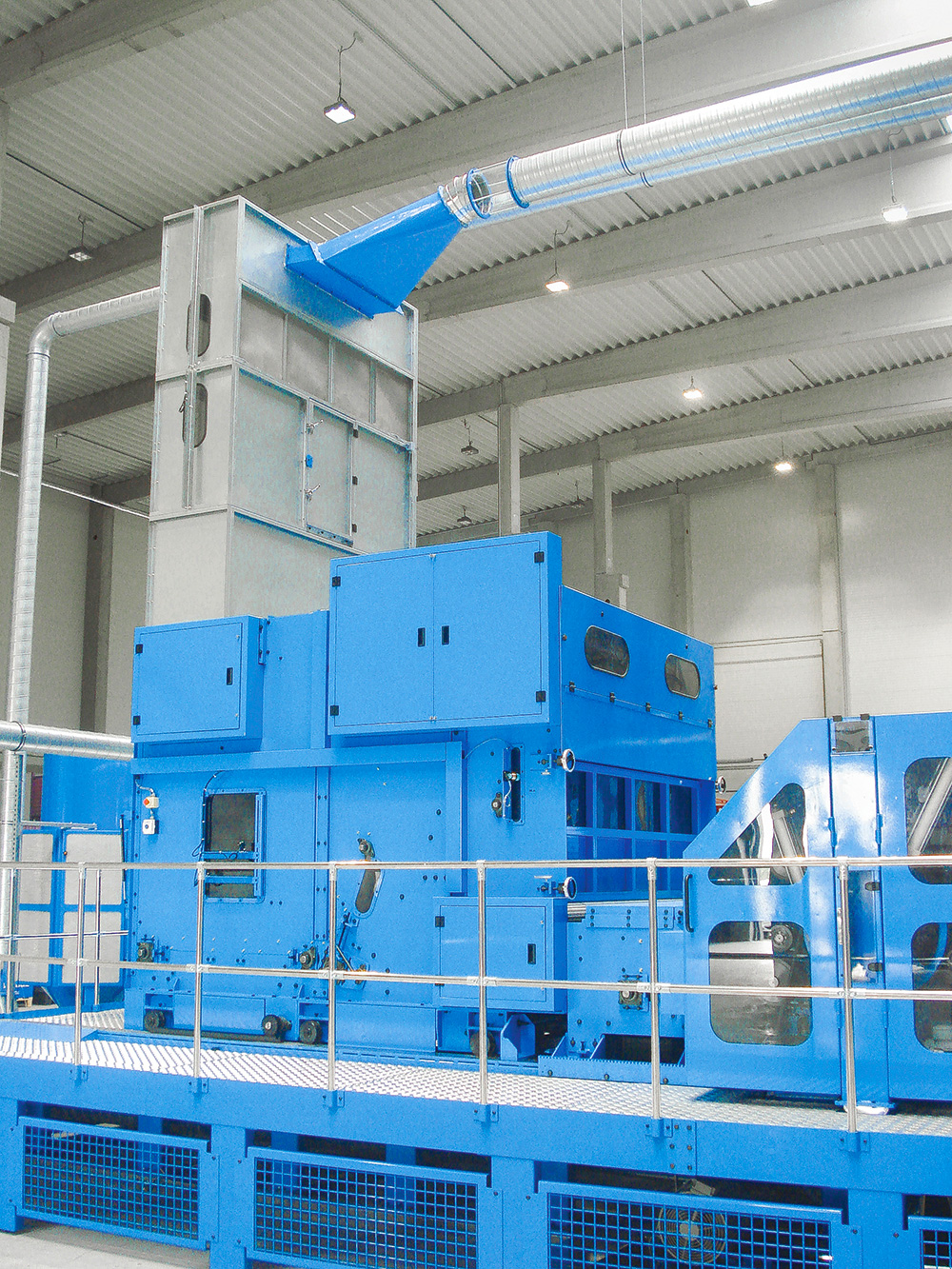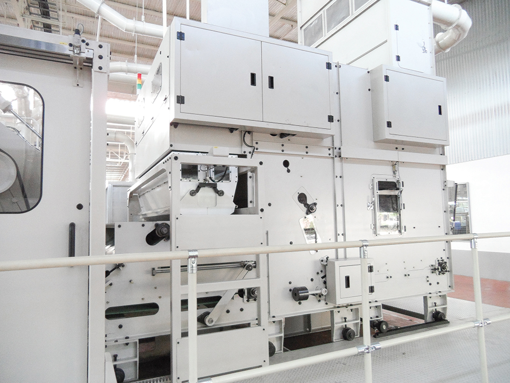 - Spike Lattice에 의해 넘어간 Fiber는 Vibration room에서 균일한 밀도로 유지되면서 중량 편차를 최소화하여 Carding machine으로 공급된다.