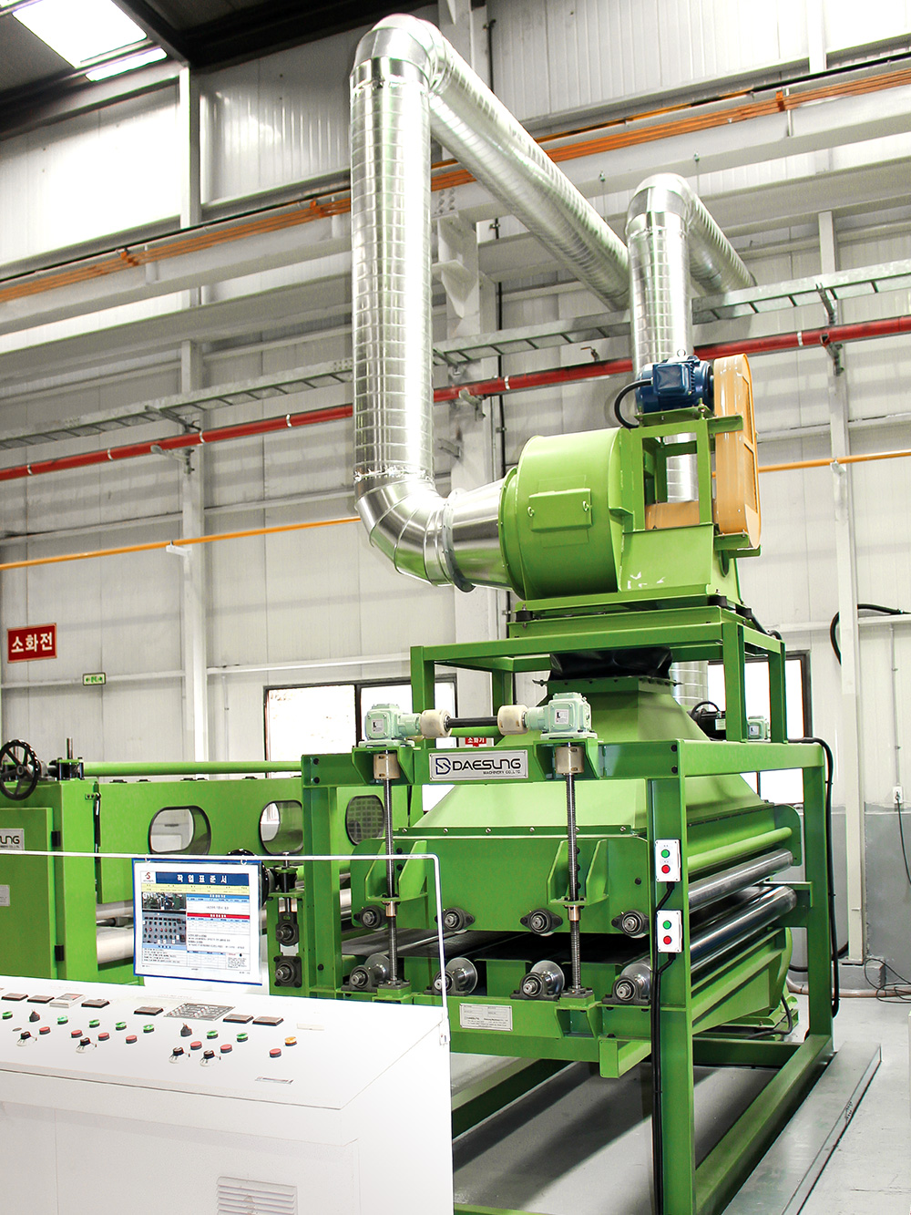 - Thermo-Bonding 및 Calendering 공정을 마친 부직포 원단에 Air를 통과 시켜 표면을 식혀준다.