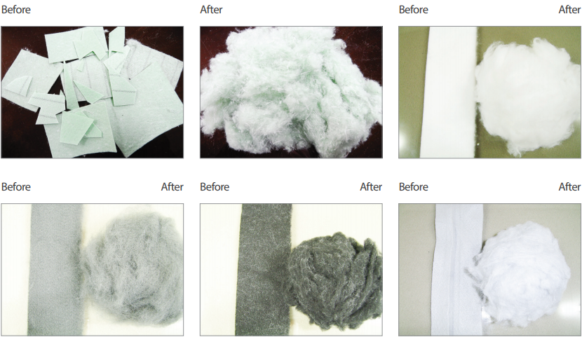 - With a worker & stripper roller type design, the metallic wire perfectly regenerates the fibers into reusable material.