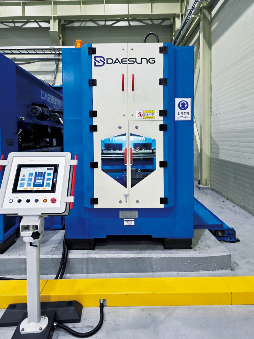 - The fabric delivered from the previous loom is punched by the needle board in either the Down or Up direction, enhancing fabric bonding strength and forming nonwoven materials with uniform thickness.