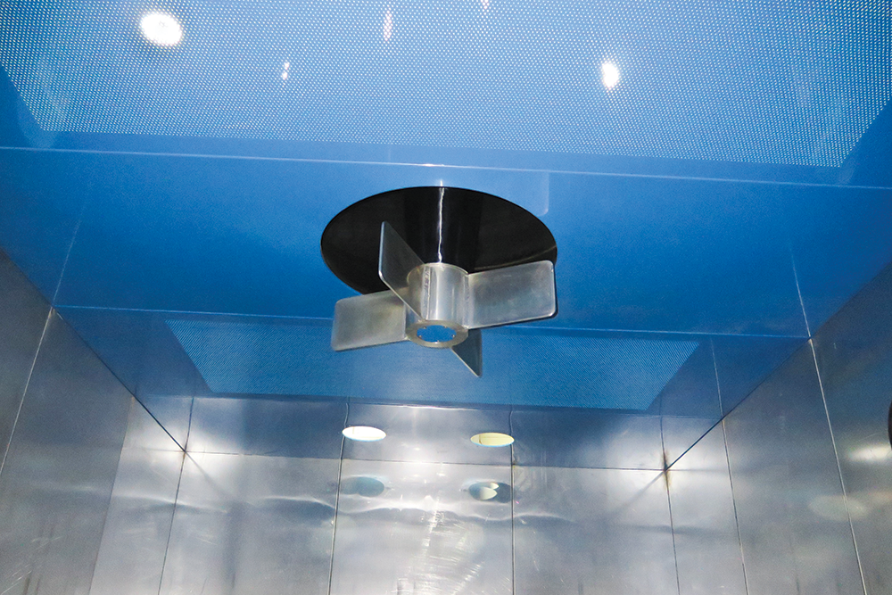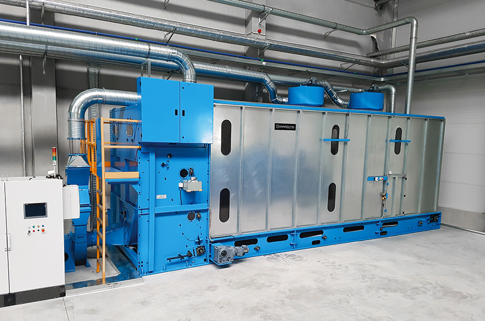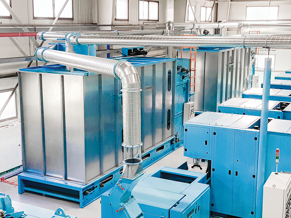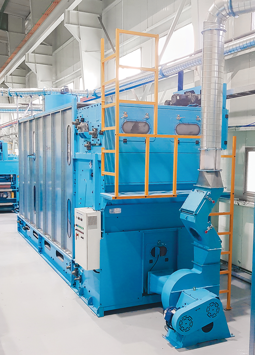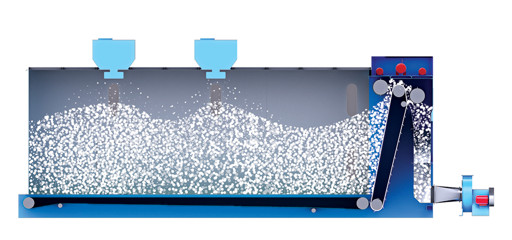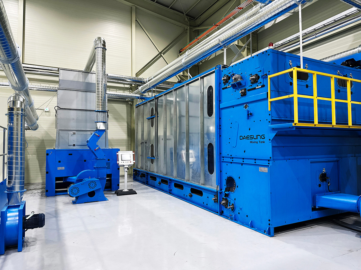 - 이전 공정에서 Opening되어 이송된 여러 종류의 Fiber가 Auto Blender의 회전에 의해 모든 방향으로 확산되면서 낙하하여, Tank 내에 균일한 분포의 혼합물로 저장된다.