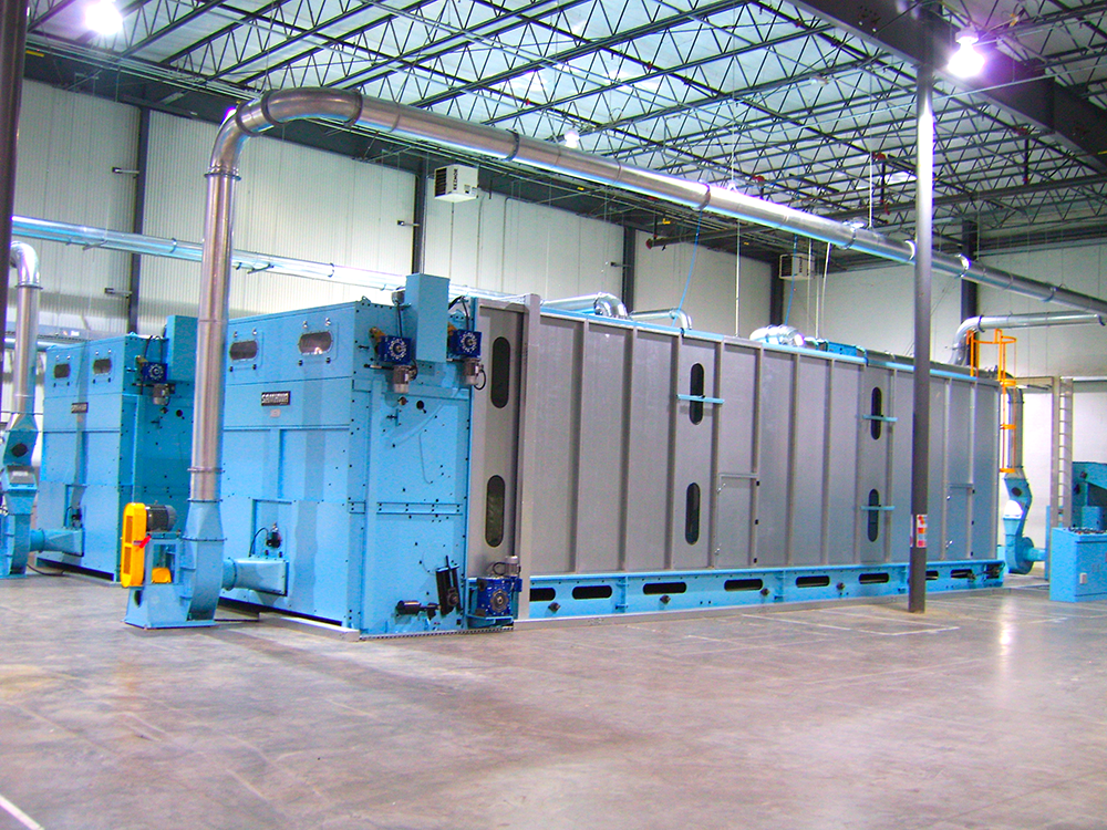 - Various types of opened fibers are dispersed in all directions by the rotation of the auto blender, falling into the tank and being stored as a uniformly distributed mixture.