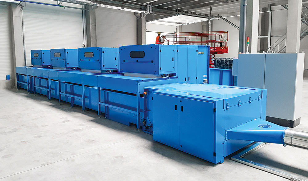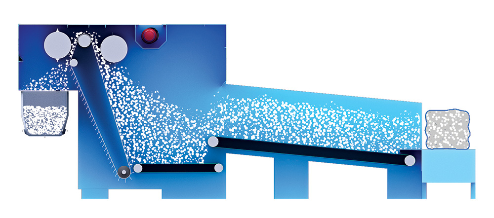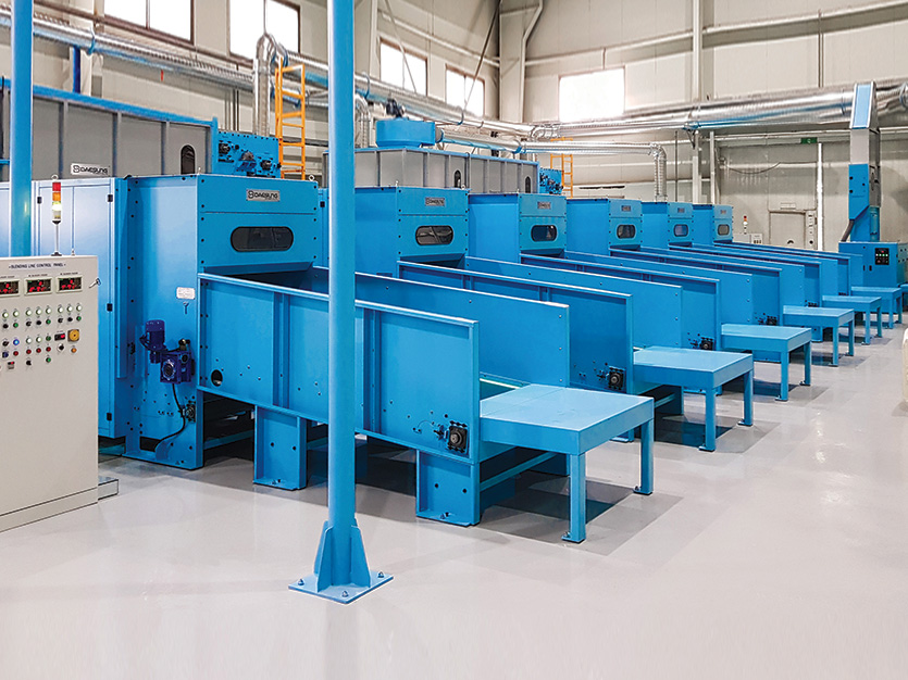 - The opened bale is transported through the spike lattice, precisely delivering the required amount of fiber into the electronic scale box.